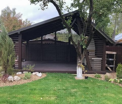 Вы можете изменить размеры изделия, увеличить сечение стоек, заказать беседку из лиственницы (породы, которая становится только крепче в воде) или выбрать другой тип кровли: поликарбонат или даже стекло.