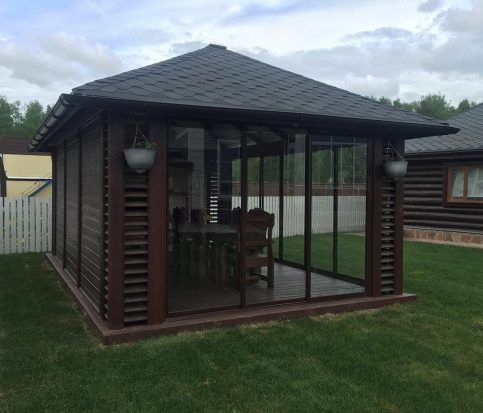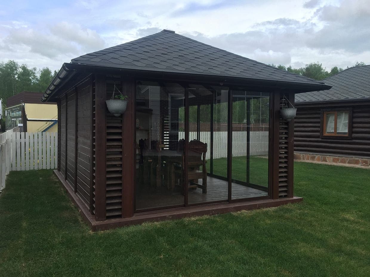 Беседка 6×4 из дерева с панорамными раздвижными окнами 2626