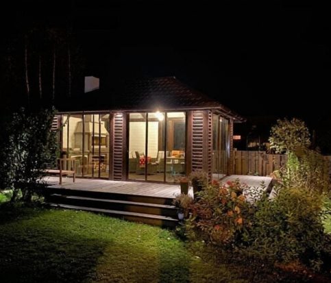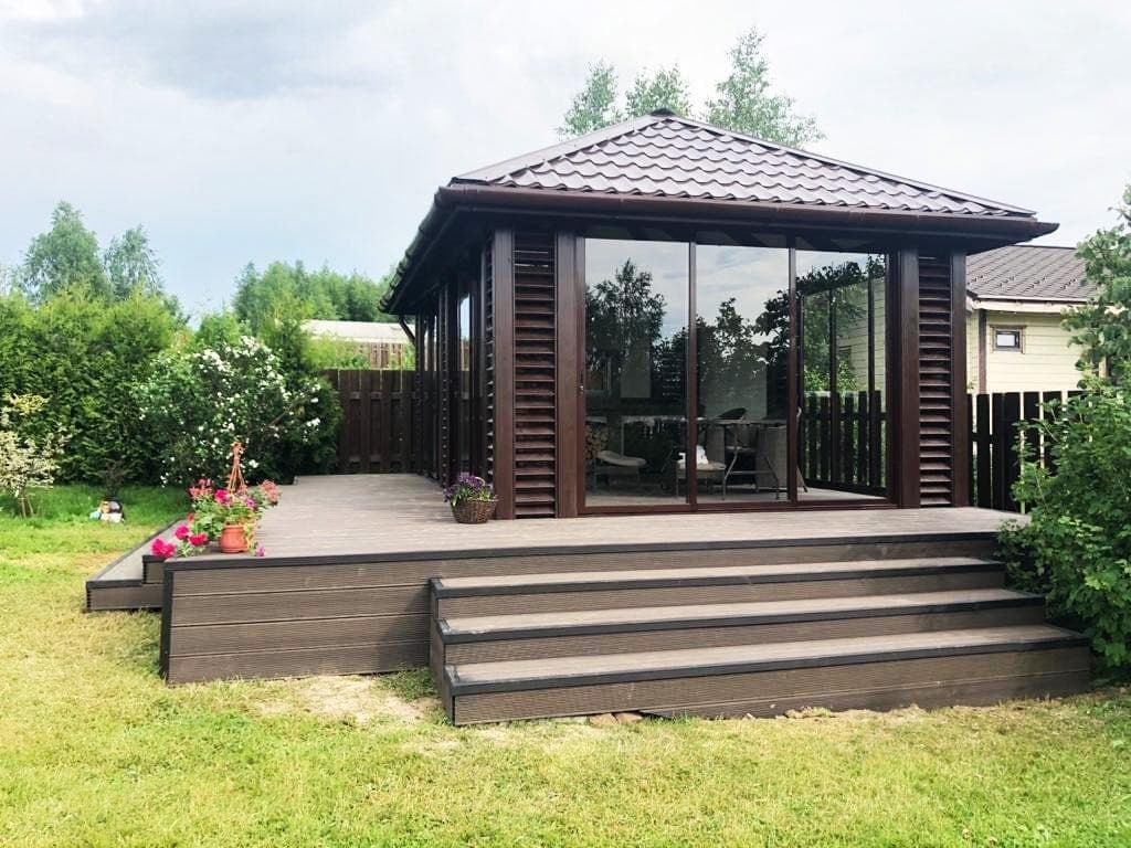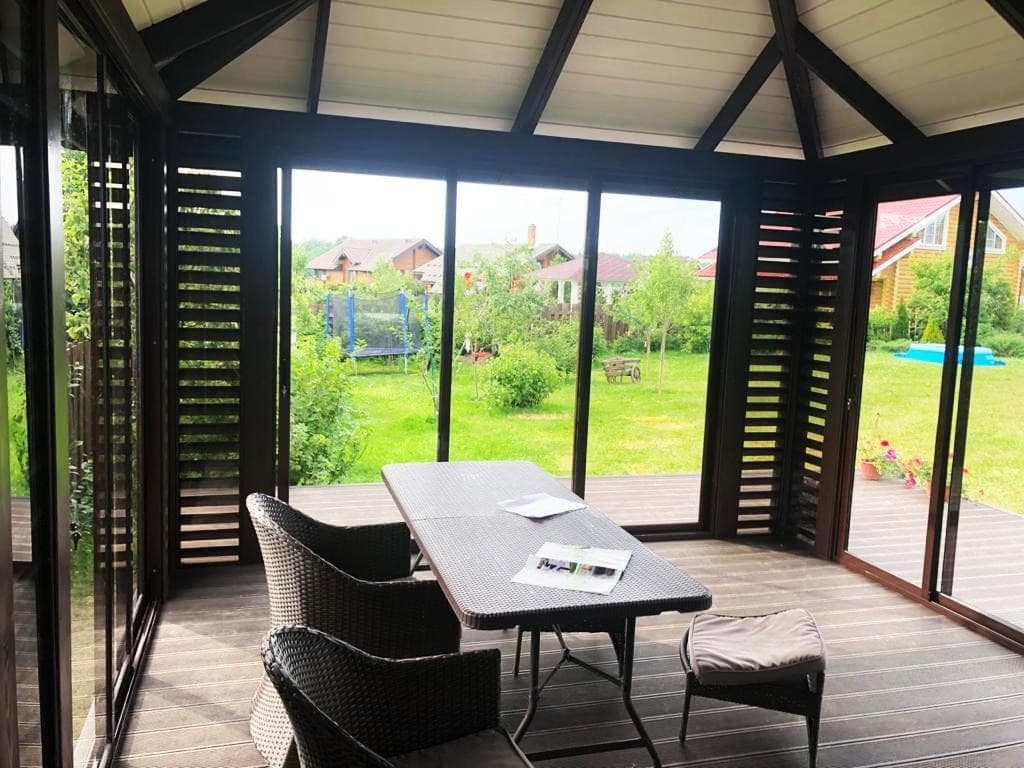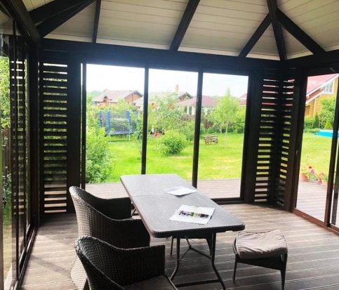 Беседка закрытая с остеклением и барбекю внутри 2614