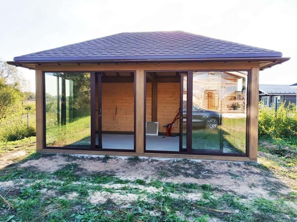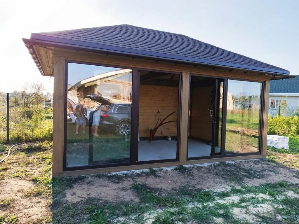 Беседка современная закрытая с остеклением 2615