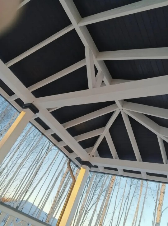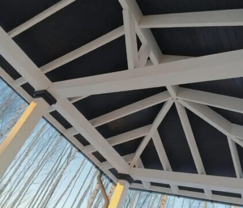 Главное преимущество беседки 2624 — надёжность. Беседка изготавливается из сосны камерной сушки и клееного бруса. Это полностью исключает усадку, появление трещин и скрипов даже спустя годы. Стойки увеличенного сечения 150х150 мм обеспечивают исключительную жёсткость каркаса. Конструкции не страшны ни обильные снегопады, ни шквалистый ветер.