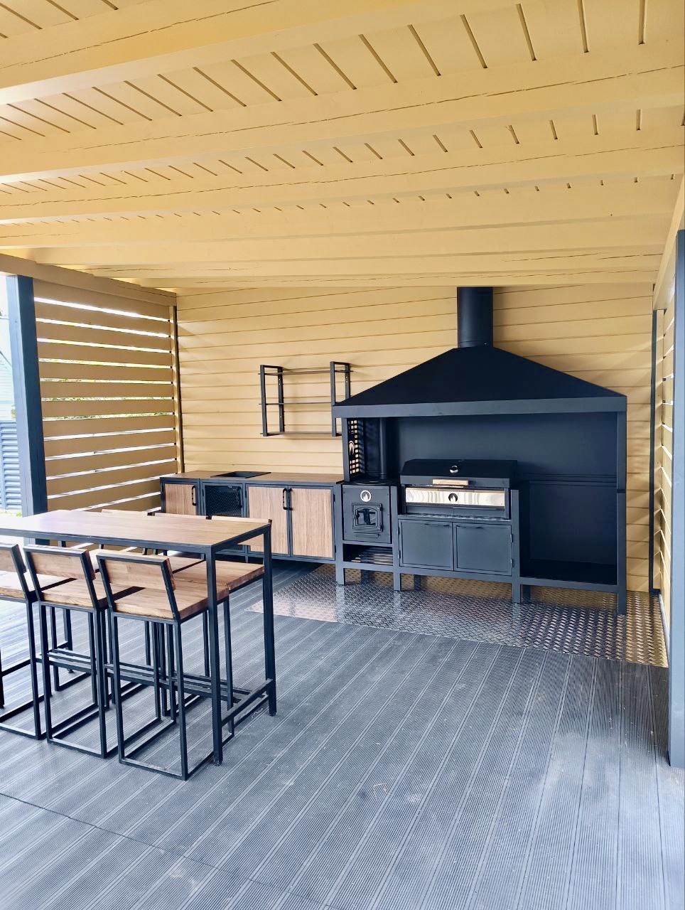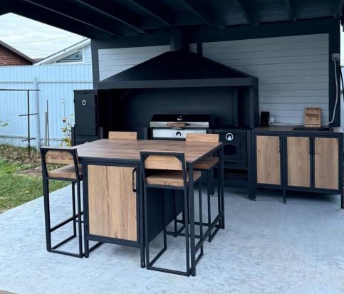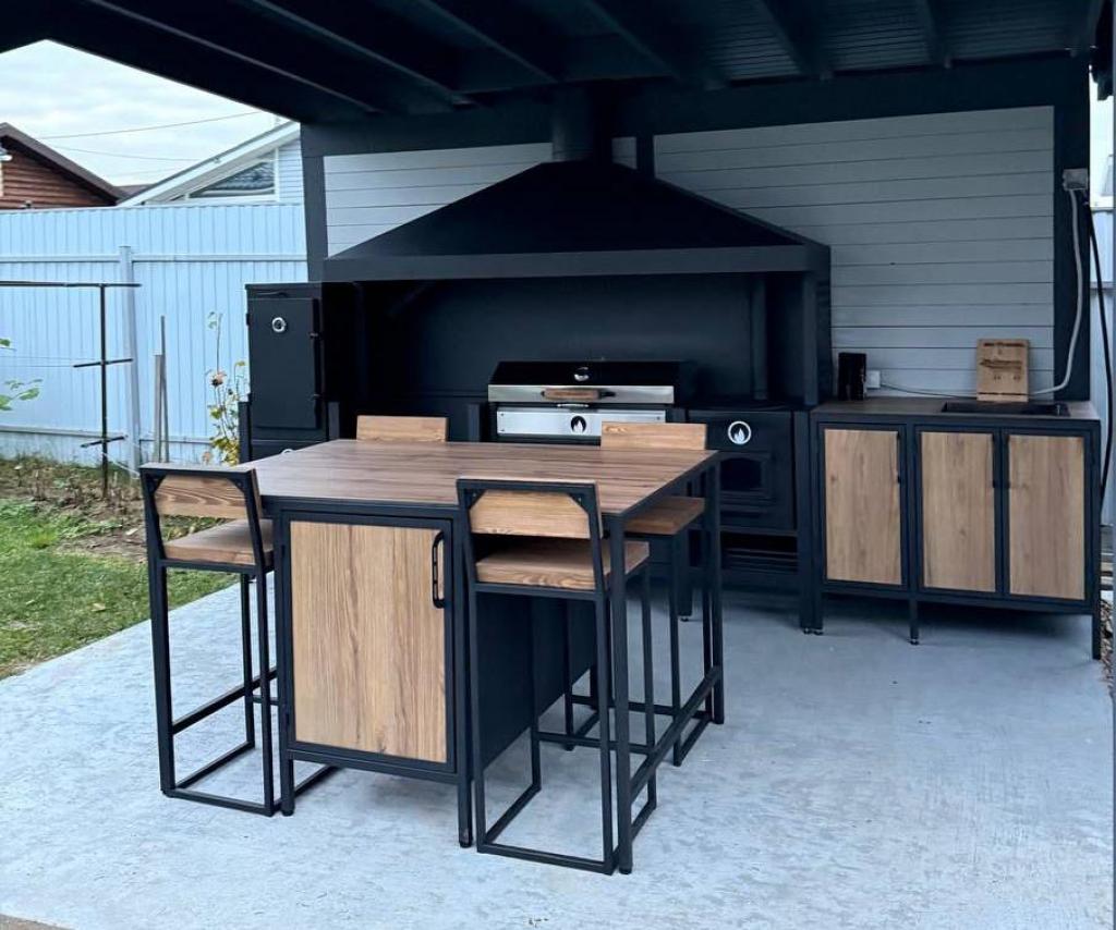Если вы часто устраиваете вечеринки на даче и хотите, чтобы гости чувствовали себя вовлечёнными в процесс приготовления, эта печь-барбекю станет центром вашей уличной кухни.
